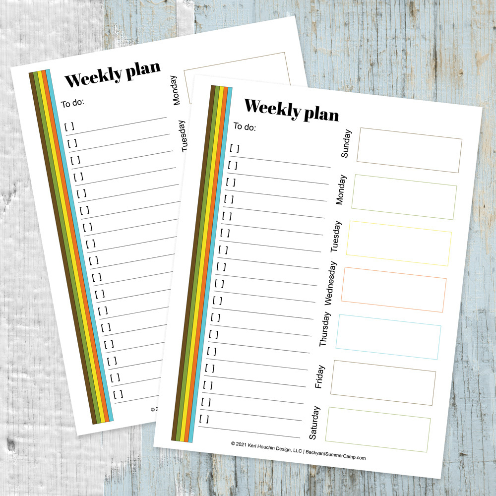 Organize your family's summer schedule with a printable summer planner. This mini summer planner is undated but intended to cover 3 months: June, July, and August.
