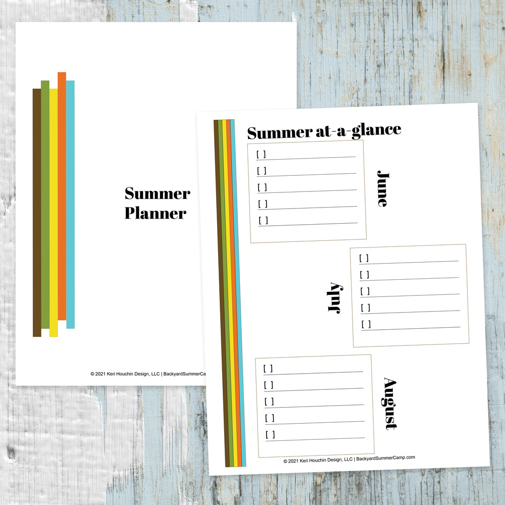 Organize your family's summer schedule with a printable summer planner. This mini summer planner is undated but intended to cover 3 months: June, July, and August.