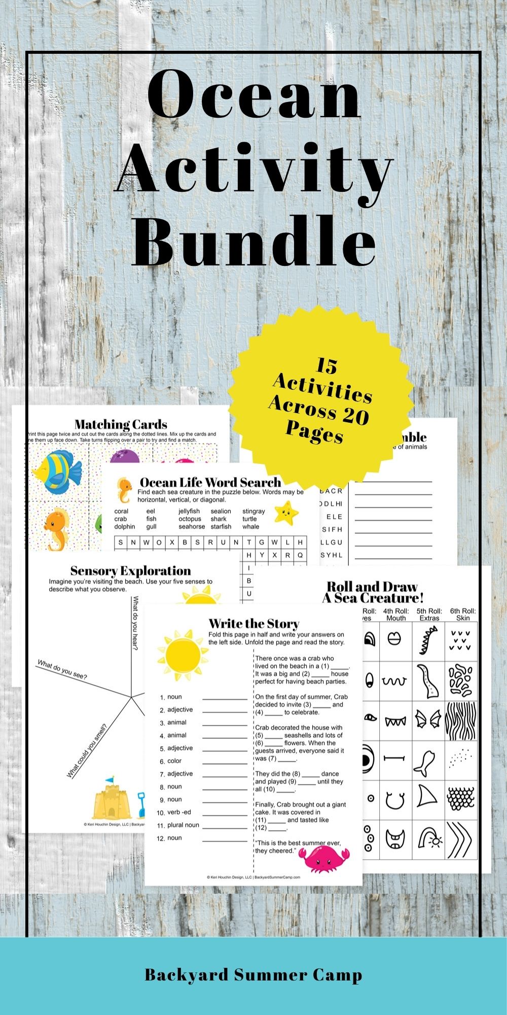 The Beach and Ocean Life Activity Bundle is a collection of printable activity sheets for kids age 5-12.